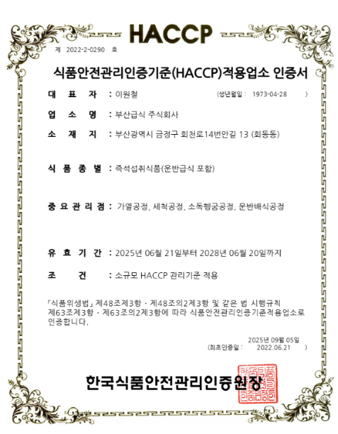 HACCP 인증서